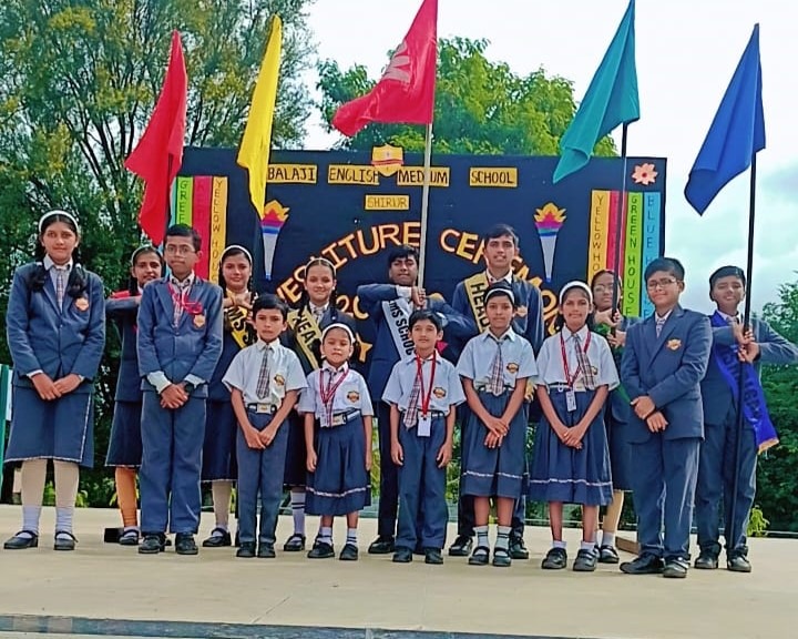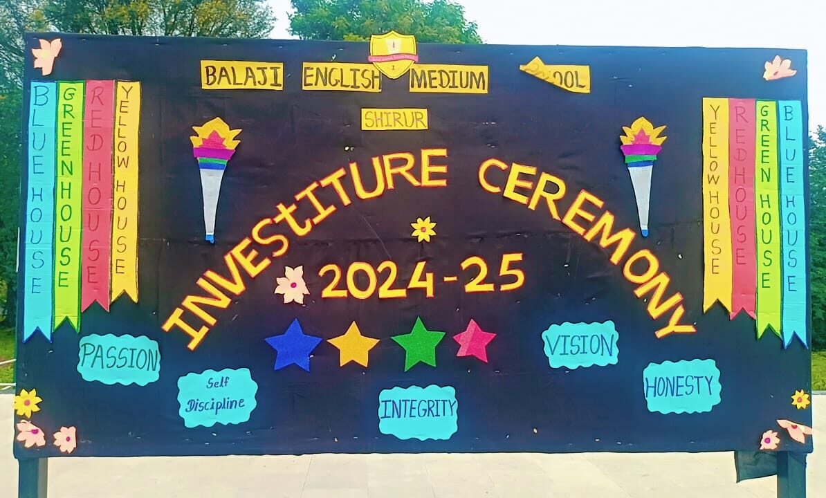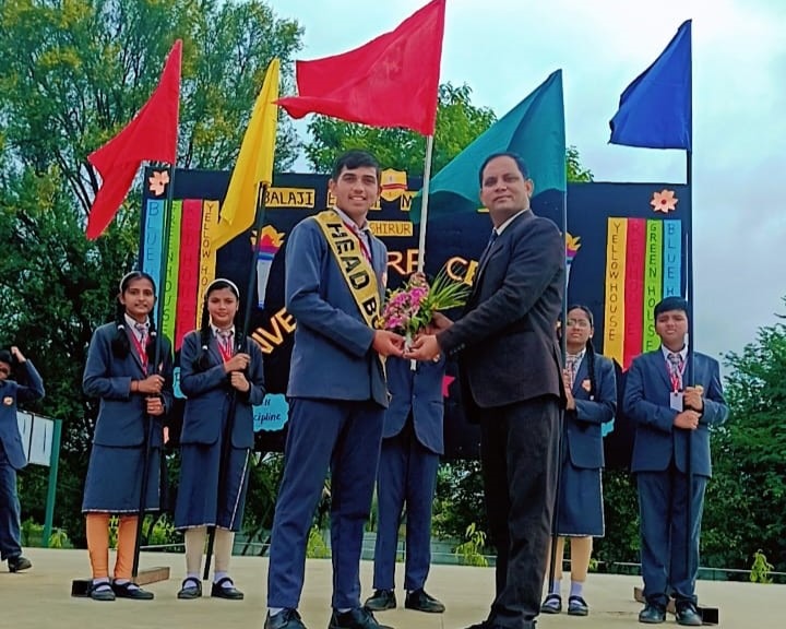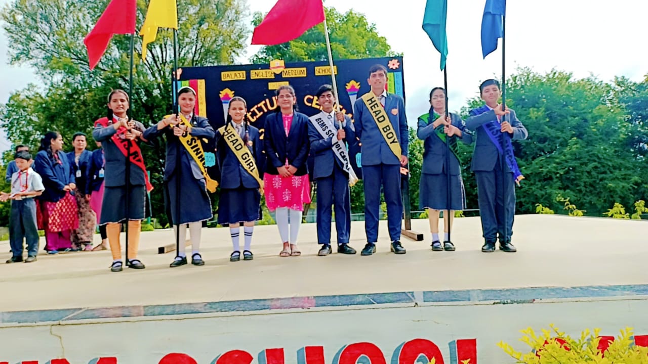 The investiture ceremony for the academic session 2024-25 with great pomp and dignity at Balaji English Medium School. Elected Head Boy and Head Girl along with house leaders and house captain introduced themselves and they were conferred with sashes and floral bouquet by the Principal. They took the pledge to hold the school Motto in high esteem. The students council was constituted who took the oath to serve school with almost sincerity and to the best of their abilities.